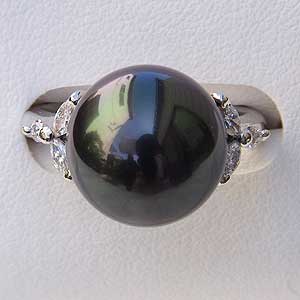 タヒチ黒蝶真珠 リング ダイヤモンド パール グリーン系 12.5mm PT900 指輪 ラウンド形【RCP】